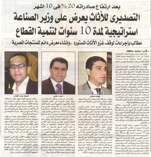 التصديري للاثاث يعرض على وزير الصناعة استراتيجية لمدة 10 سنوات لتنمية القطاع September 10, 2014 / Administrator View fullsize 0 Likes