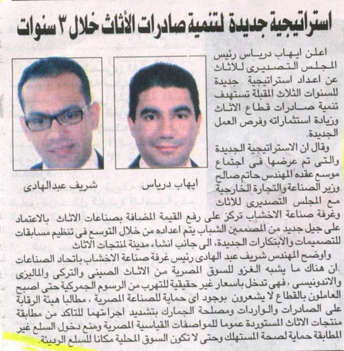 استراتيجية جديدة لتنمية صادرات الاثاث خلال 3 سنوات September 10, 2014 / Administrator View fullsize 0 Likes