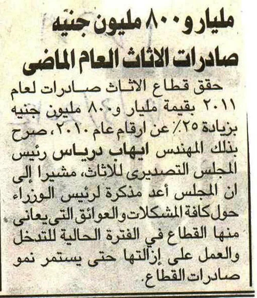 مليار و800 مليون جنيه صادرات الاثاث العام الماضي September 10, 2014 / Administrator View fullsize 0 Likes