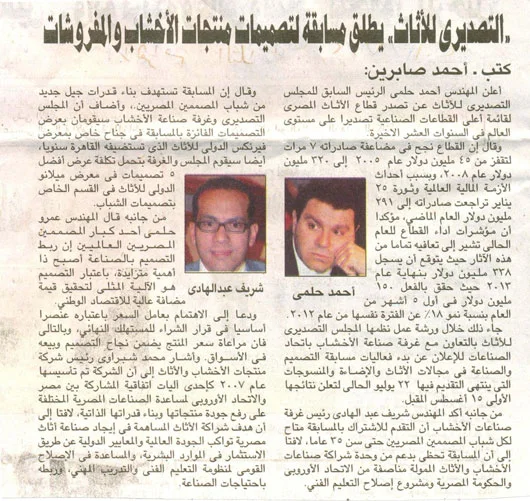 التصديري للأثاث يطلق مسابقة لتصميمات منتجات الأخشاب والمفروشات September 11, 2014 / Administrator View fullsize 0 Likes