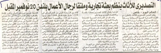 التصديري للأثاث ينظم بعثة تجارية وملتقا لرجال الأعمال بلندن 20 نوفمبر المقبل September 11, 2014 / Administrator View fullsize 0 Likes