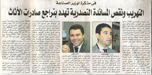 التهريب ونقص المساندة التصديرية تهدد بتراجع صادرات الاثاث September 10, 2014 / Administrator View fullsize 0 Likes