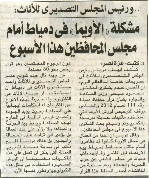 مشكلة الأويما في دمياط امام مجلس المحافظين هذا الاسبوع September 10, 2014 / Administrator View fullsize 0 Likes